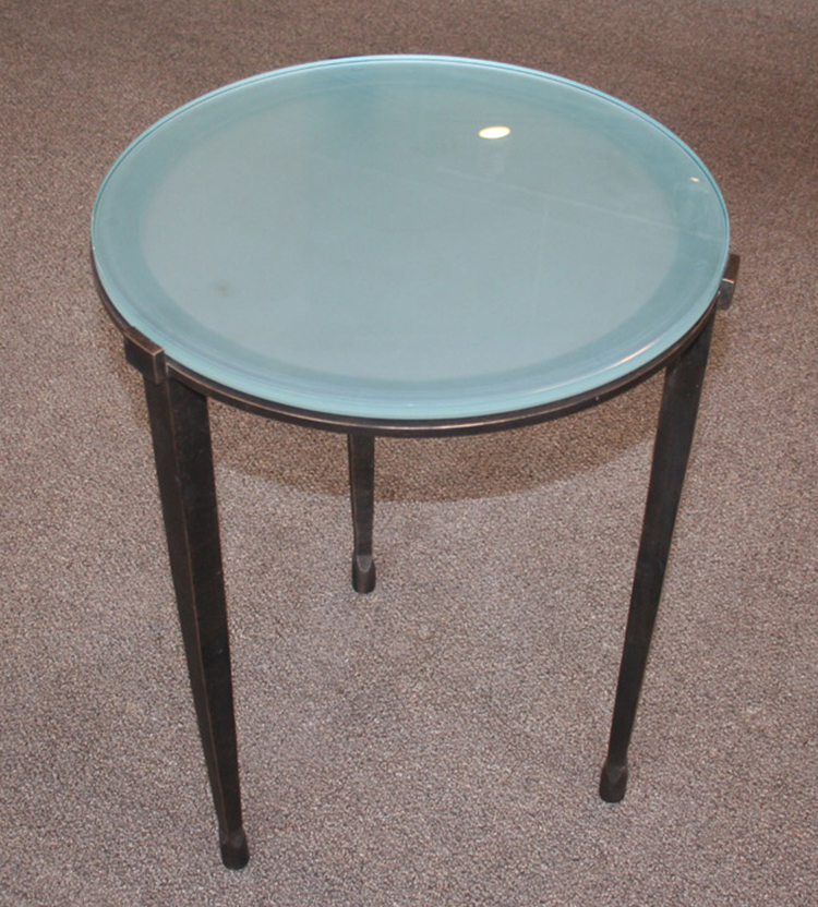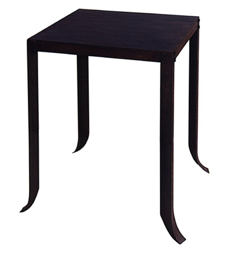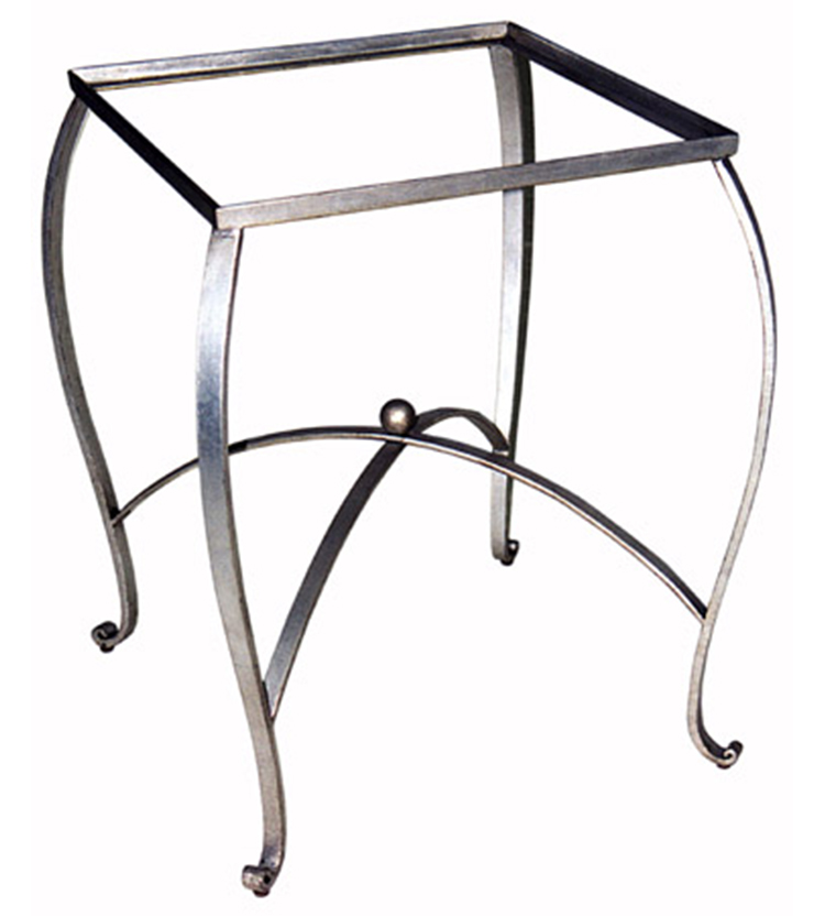End tables can feature integral metal tops or serve as bases for glass, stone, or wood surfaces. Metal tops can incorporate texture, pattern, or decorative piercing.