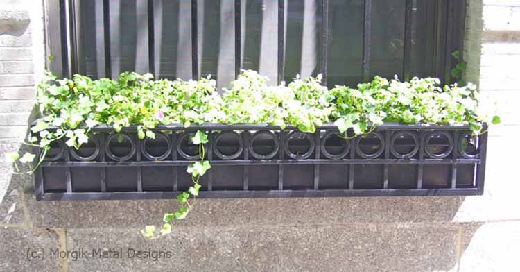 Custom window flower box with circle design. Finish; Powder coated black