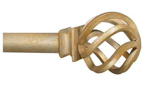 Twisted Ball Cage w/ collar-sq stock 3″ Diam x 4″ L x 1-1/4″ Base Pictured in Antique Champagne