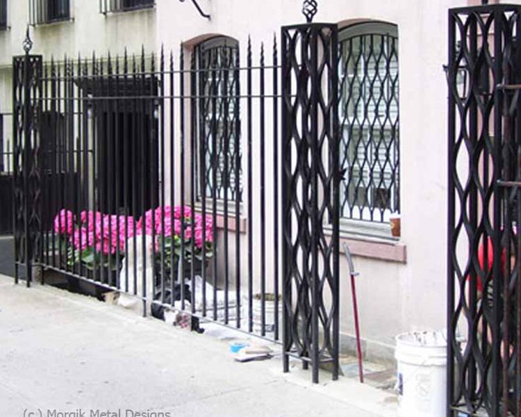 Custom steel gate and fencing. Finish; Powder coated black