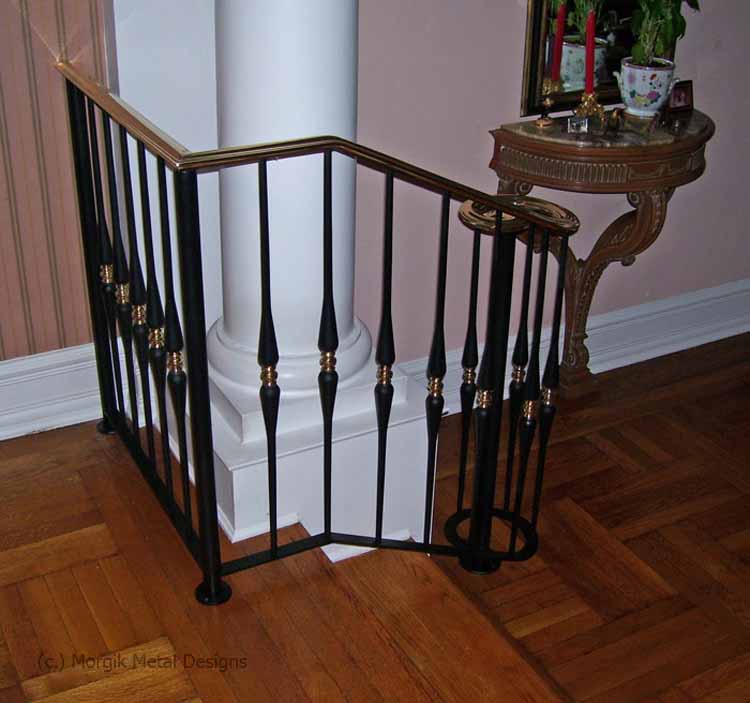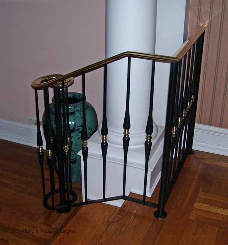 Custom steel and brass spindle rail with brass toprail. Finish; Natural Black and Brushed Brass