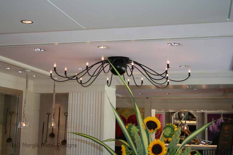 Custom 16 arm chandelier. Available UL listing. Finish; Black