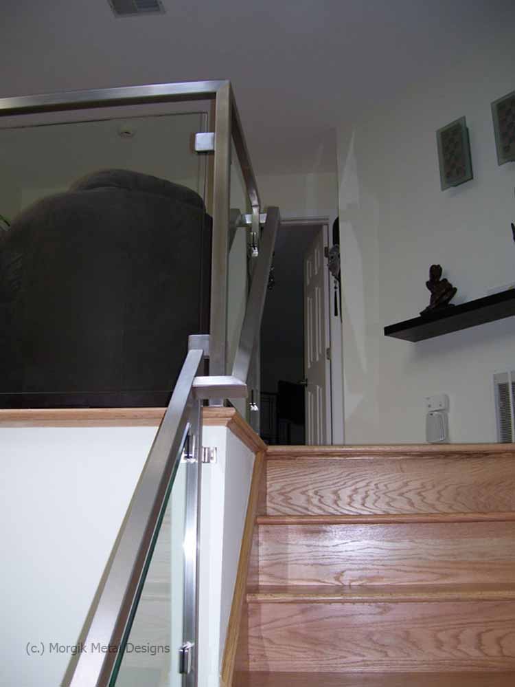 Custom stainless steel and glass railing. Finish; Brushed stainless steel
