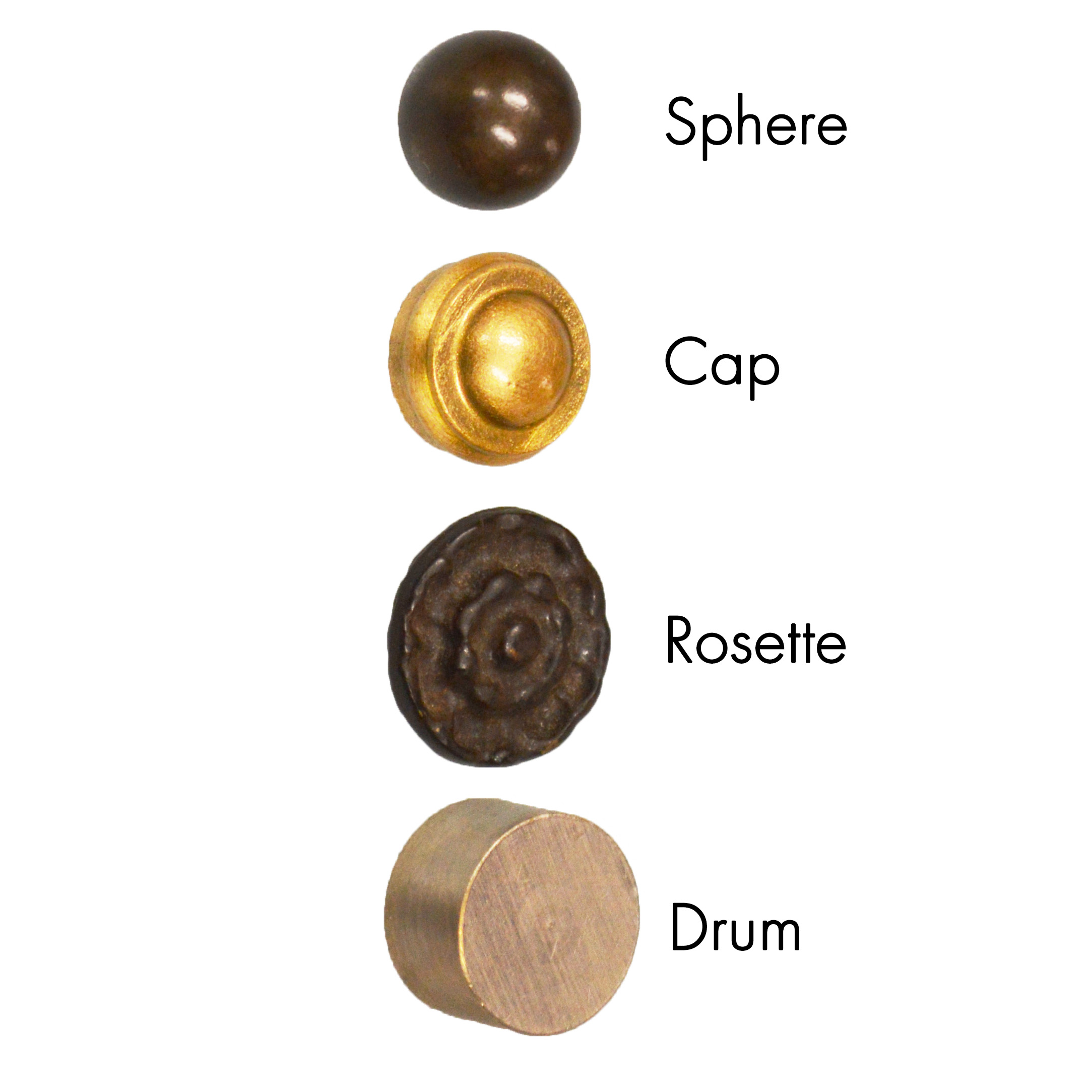 Available in Drum, Cap, Rosette and Sphere designs